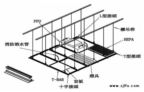 FFU風機吊頂龍骨系統(tǒng)是指用鋁合金做成的,用于潔凈室天花吊頂?shù)闹鞑牧?,它通過螺桿與鋁合金相接,用來固定FFU。適用于局部層流系統(tǒng)、FFU系統(tǒng)和不同潔凈級別的空氣凈化系統(tǒng)。