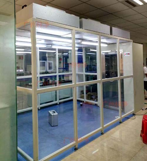 千級潔凈棚(1000級潔凈棚)采用工業(yè)鋁材(或不銹鋼方通、鐵方通噴塑)作為框架,風(fēng)機濾網(wǎng)機組(FFU)送風(fēng),四周懸掛防靜電垂簾(或鋼化玻璃),其內(nèi)部凈化級別可達到100級-10000級。適用于操作區(qū)內(nèi)局部凈化級別要求高的區(qū)域。