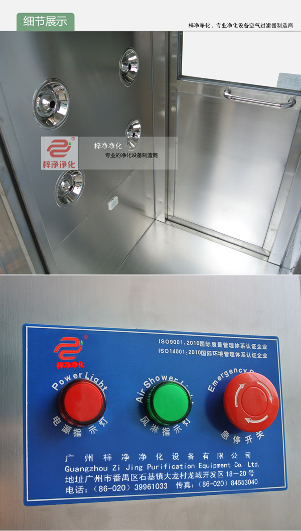 工作原理:用于人員出入,防止不潔凈氣流進入潔凈區(qū),工作區(qū)內(nèi)設(shè)置吹淋凈化處理裝置,消除人、物表面附著塵埃,同時具有氣閘作用,配合潔凈空調(diào)系統(tǒng)確保潔凈室達到所需潔凈度。