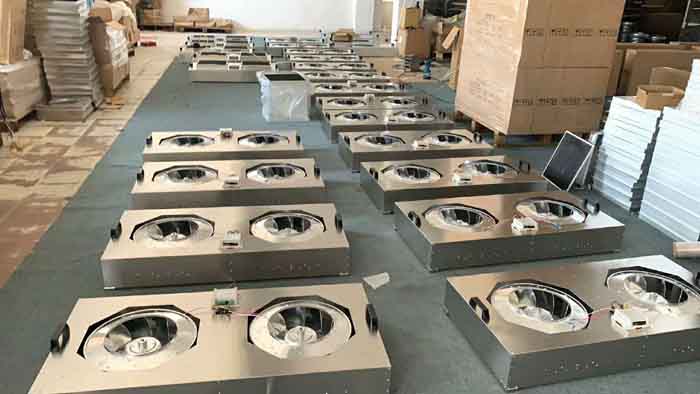FFU可模塊化連接使用,使得FFU廣泛應(yīng)用于無塵室,無塵操作臺,無塵生產(chǎn)線,組裝式無塵室和局部百級等應(yīng)用場合。利用FFU層流罩可以制作簡易潔凈工作臺,潔凈棚,潔凈傳遞柜和潔凈存衣柜。