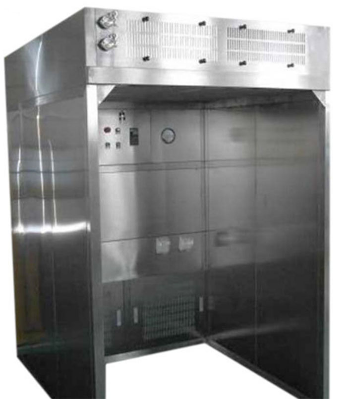 在離心風(fēng)機提供的壓力下,通過高效過濾器,使之達到潔凈要求。潔凈氣流被送至送風(fēng)箱體內(nèi),90%通過均流送風(fēng)網(wǎng)板,形成均勻的垂直送風(fēng)氣流,10%則通過風(fēng)量調(diào)節(jié)板,排出設(shè)備。所有氣流均經(jīng)過高效過濾器處理,所以送風(fēng),排風(fēng)均不帶殘余粉塵,避免了二次污染。由于在工作區(qū)域形成穩(wěn)定的單向流,在此區(qū)域中散發(fā)的粉塵,會在單向氣流的影響下,隨著氣流而被初、初效過濾器所捕集。設(shè)備帶有10%的排風(fēng),從而形成相對與外部環(huán)境的負壓,從一定程度上保證了此區(qū)域內(nèi)的粉塵不會擴散至室外,起到保護外部環(huán)境的作用。