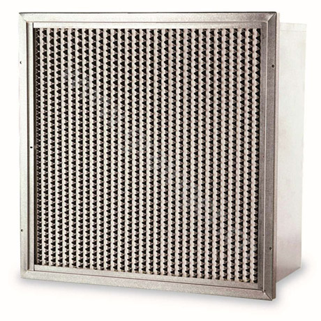 耐高濕高效過濾器以叫鋁隔板高效過濾器,耐高濕有隔板高效過濾器采用隔板式設(shè)計(jì),波紋形隔板可以精確地保持褶層間距、在最小阻力下,最大限度地利用濾料。鋁隔板高效過濾器濾材兩面180褶翻折形成鍥形褶層,濾料折彎時有兩道壓痕,使鋁隔板高效過濾器濾料在隔板的尾端開成鍥形盒式褶層,鍥形盒式褶層可以防止濾料破損。在腐蝕性環(huán)境中,可使用鍍乙烯隔板,捕捉0.3um粒子效率99.99%。