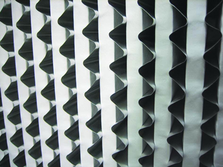 2.濾料采用耐高濕超細(xì)玻璃纖維濾紙制成,以鋁箔板做分隔。波紋形紙隔板或鋁隔板維持每一褶紙之間等距間隔,氣流易于穿過,確保濾材有效利用及增加強(qiáng)度。